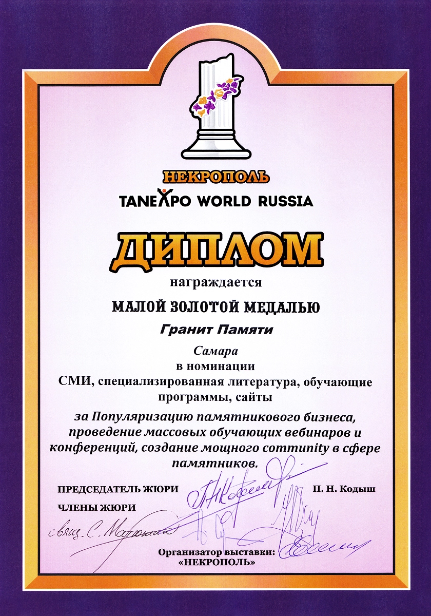 Журнал, который рассказывает о работе мемориальщиков, сообщает читателям о новых идеях, услугах и товарах. В журнале также можно узнать об изменениях в законах, о том, как работать с клиентами, и о других важных вещах, которые касаются нашей работы. Выпускается один раз в год.