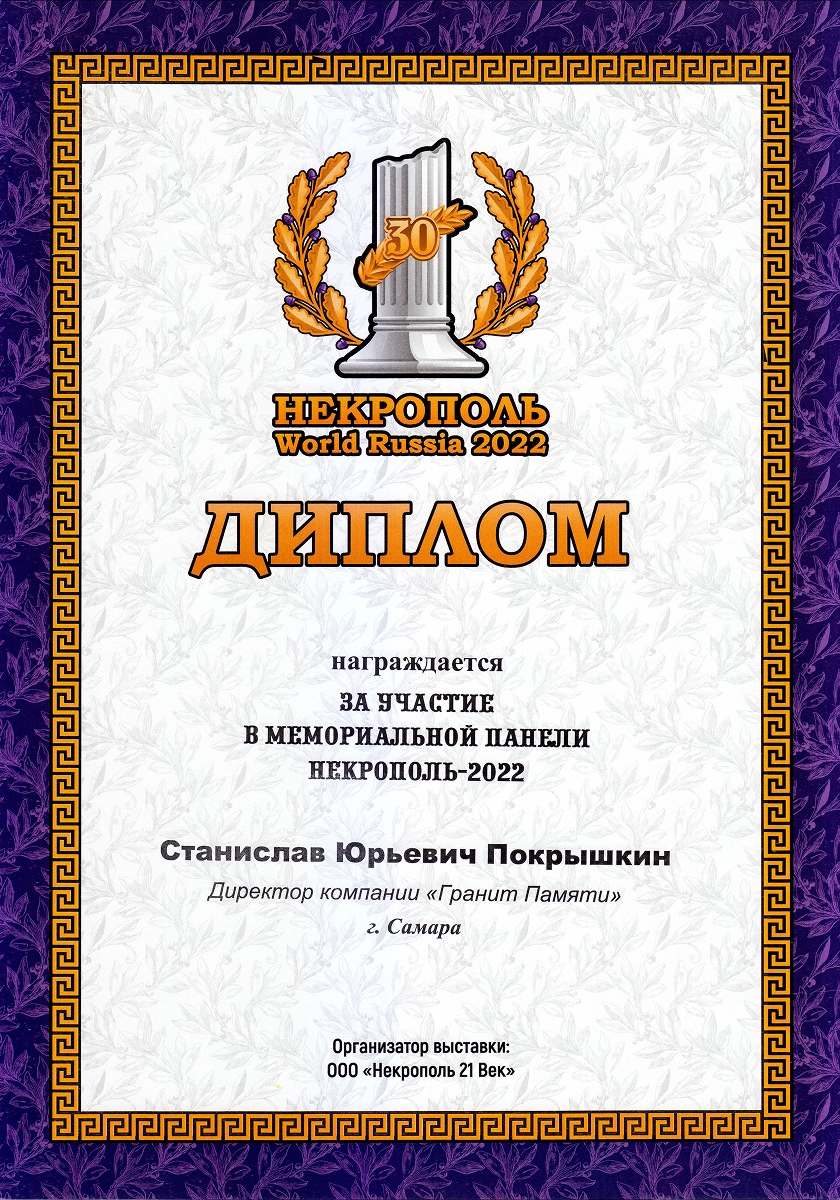 Компания была основана в 1998 году Юрием Григорьевичем Покрышкиным и изначально имела другое название. Свое нынешнее имя — «Гранит Памяти» — она получила в 2019 году, когда руководство принял его сын, Станислав Юрьевич. Вместе с командой он провёл ребрендинг и вывел компанию на новый уровень развития. Более 25 лет мы производим в Тольятти памятники из натурального гранита и мрамора — камня, который сохраняет память поколений. За это время компания значительно выросла: открыты новые филиалы и запущена франшиза, позволяющая распространять наш опыт в других регионах. Сегодня «Гранит Памяти» — узнаваемый бренд с широкой сетью партнёров.